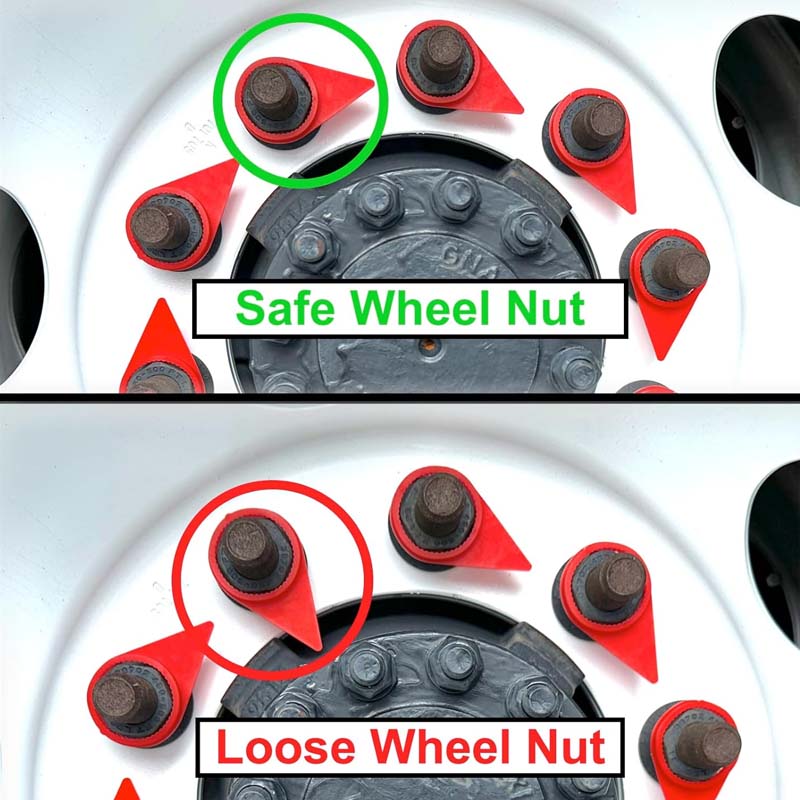 2.1 Visuel overvågning af løse hjulmøtrikker Når hjulmøtrikkerne bliver lidt løse, vil CP-seriens hjulmøtrikindikator vise et mærkbart positionsskift. Arbejdere kan hurtigt identificere abnormiteten med det blotte øje uden behov for specialiserede instrumenter.